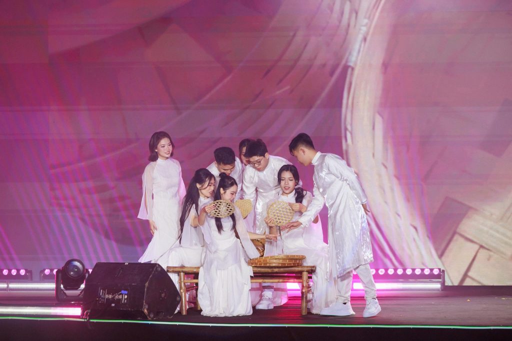 Tiếp nối mạch “đan” của câu chuyện ấy, Khối Sản phẩm mang đến show thời trang “ĐAN từ Mạch Việt” mang đậm nét giao thoa tinh tế giữa làn điệu quan họ truyền thống và hơi thở đương đại. Những bước chuyển mình từ hát quan họ, múa đương đại đến trình diễn thời trang không chỉ tạo nên sự thăng hoa về thị giác mà còn tôn vinh bản sắc, khẳng định tinh thần sáng tạo luôn được làm mới qua từng chặng đường phát triển.